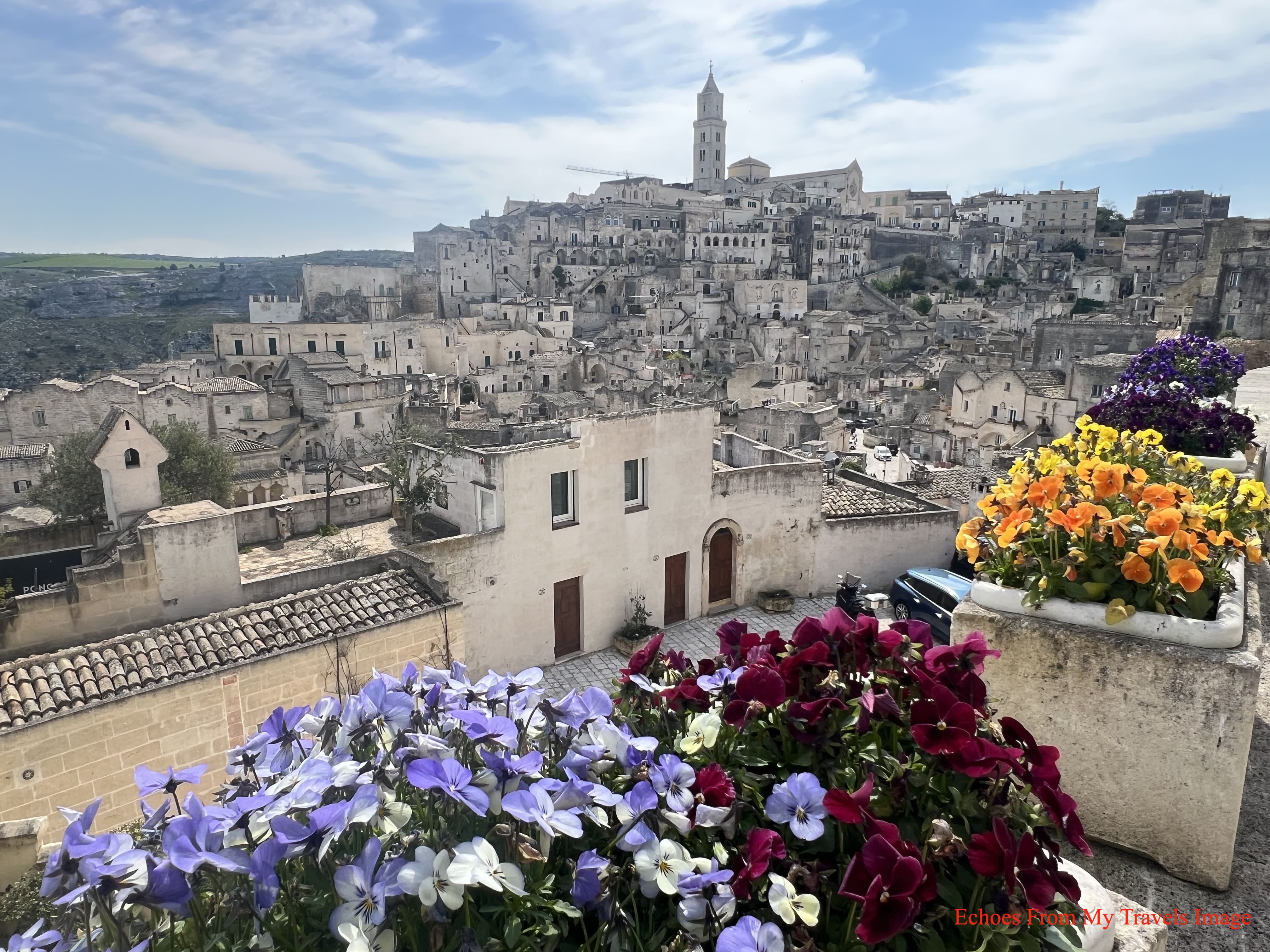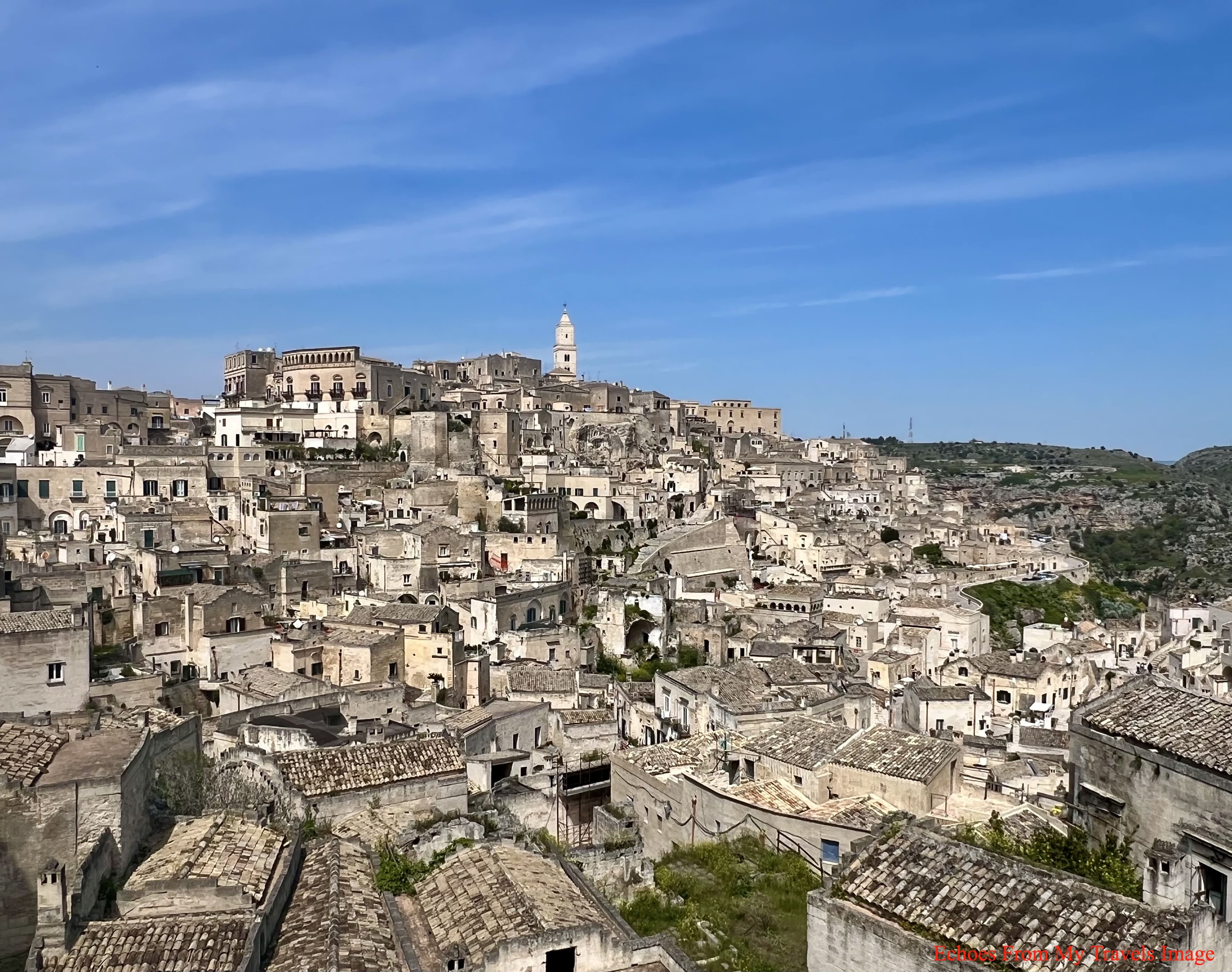 我是在驕陽燦爛的日子,抵達義大利南部馬泰拉(Matera)市的薩西(Sassi)城區,山腰的石窟洞穴屋,層層疊起如蜂巢般,好似走進中世紀城市。