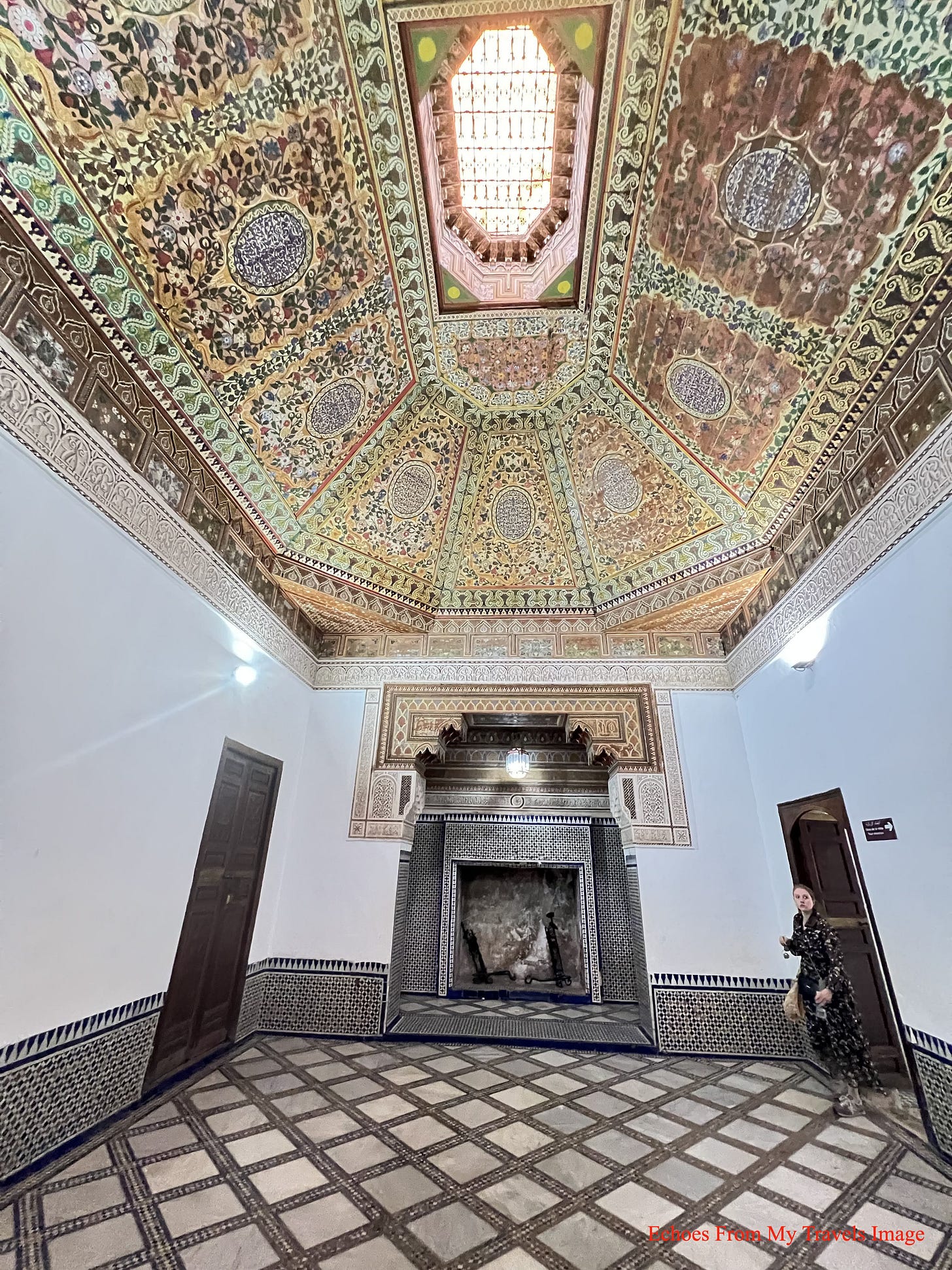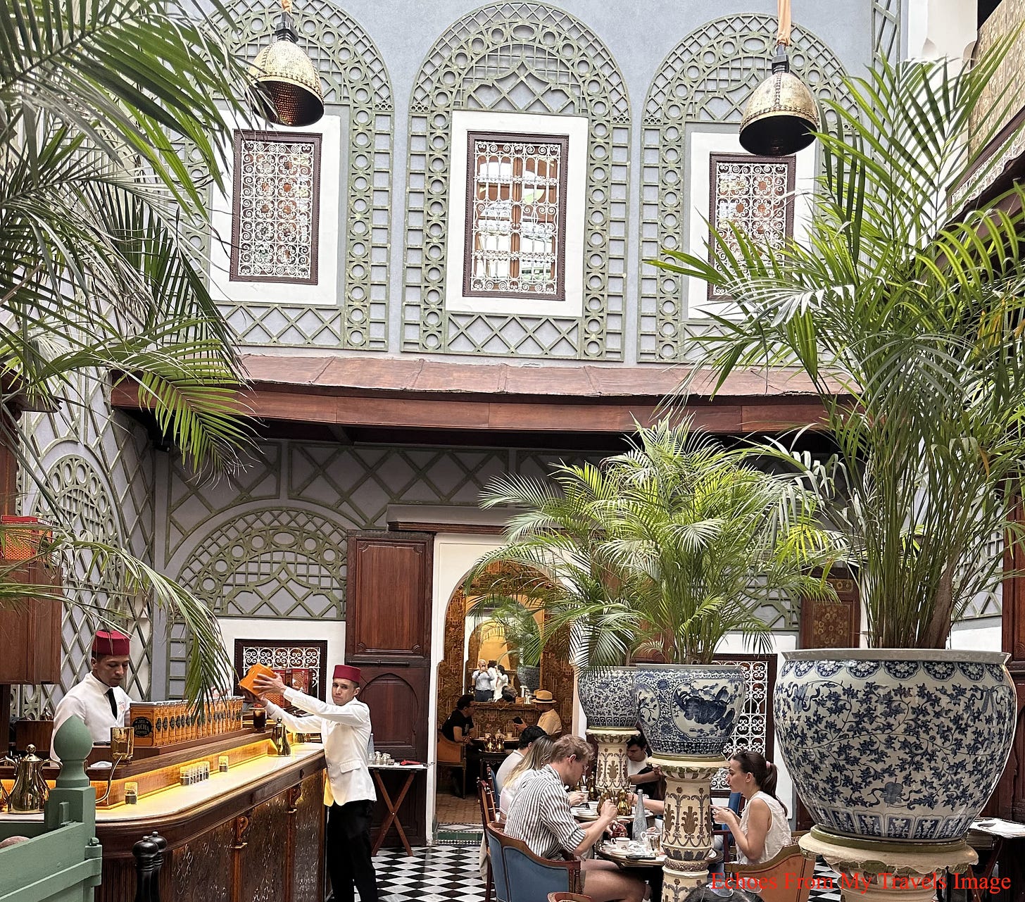 在馬拉喀什的日子裡,我也拜訪了Dar el Bacha宮殿,這是1910年落成的建築,邱吉爾曾是常客。當年眾多名流在此品嚐阿拉比卡咖啡,宮殿也由此成為Bacha咖啡的發源地。二戰後,宮殿一度封閉荒廢,直至近年由新加坡V3美食集團投資修復,轉身為博物館,並附設Bacha咖啡館。2019年重新開幕,彷彿為一段沉睡多年的文化遺產注入新生。