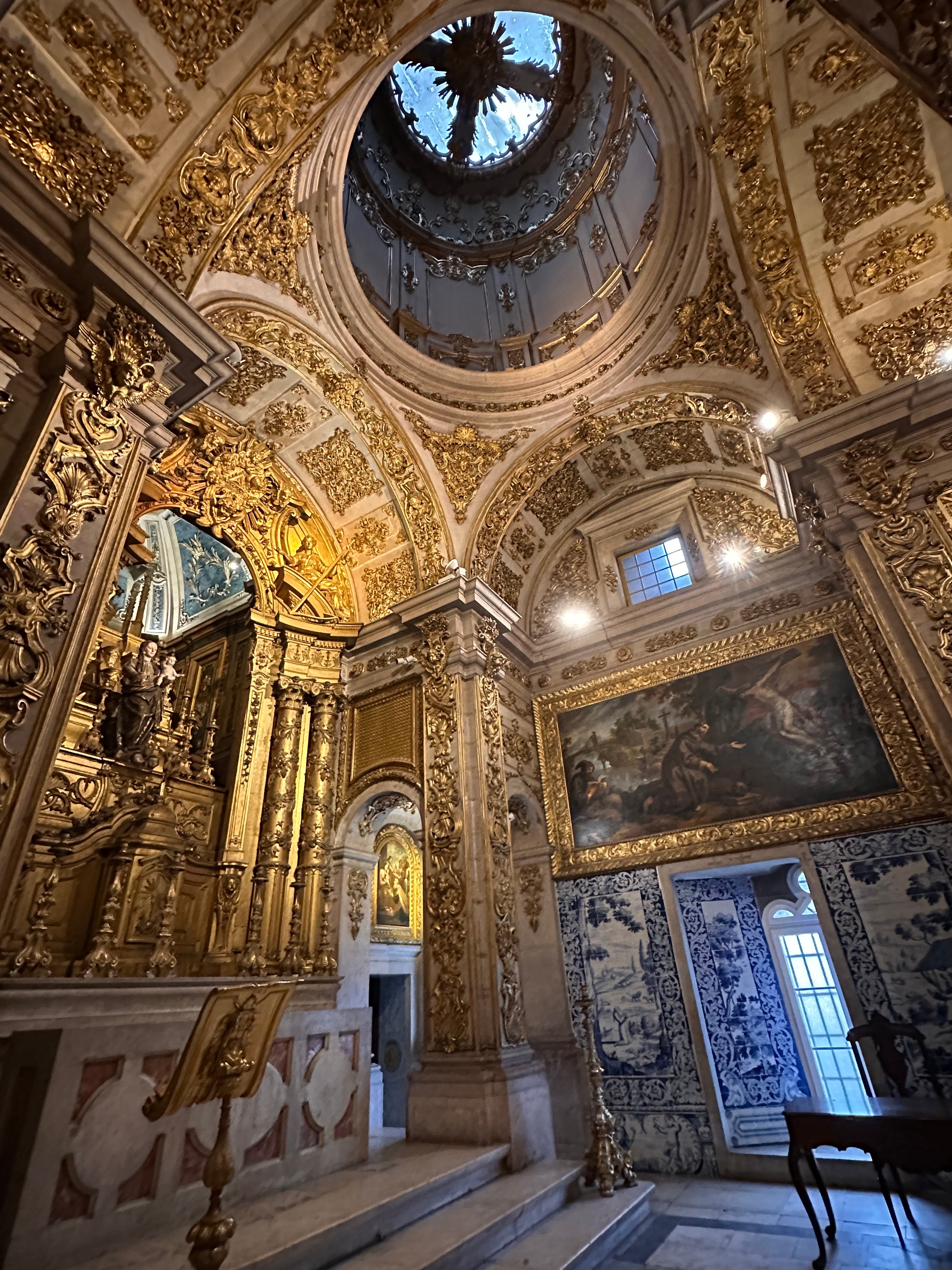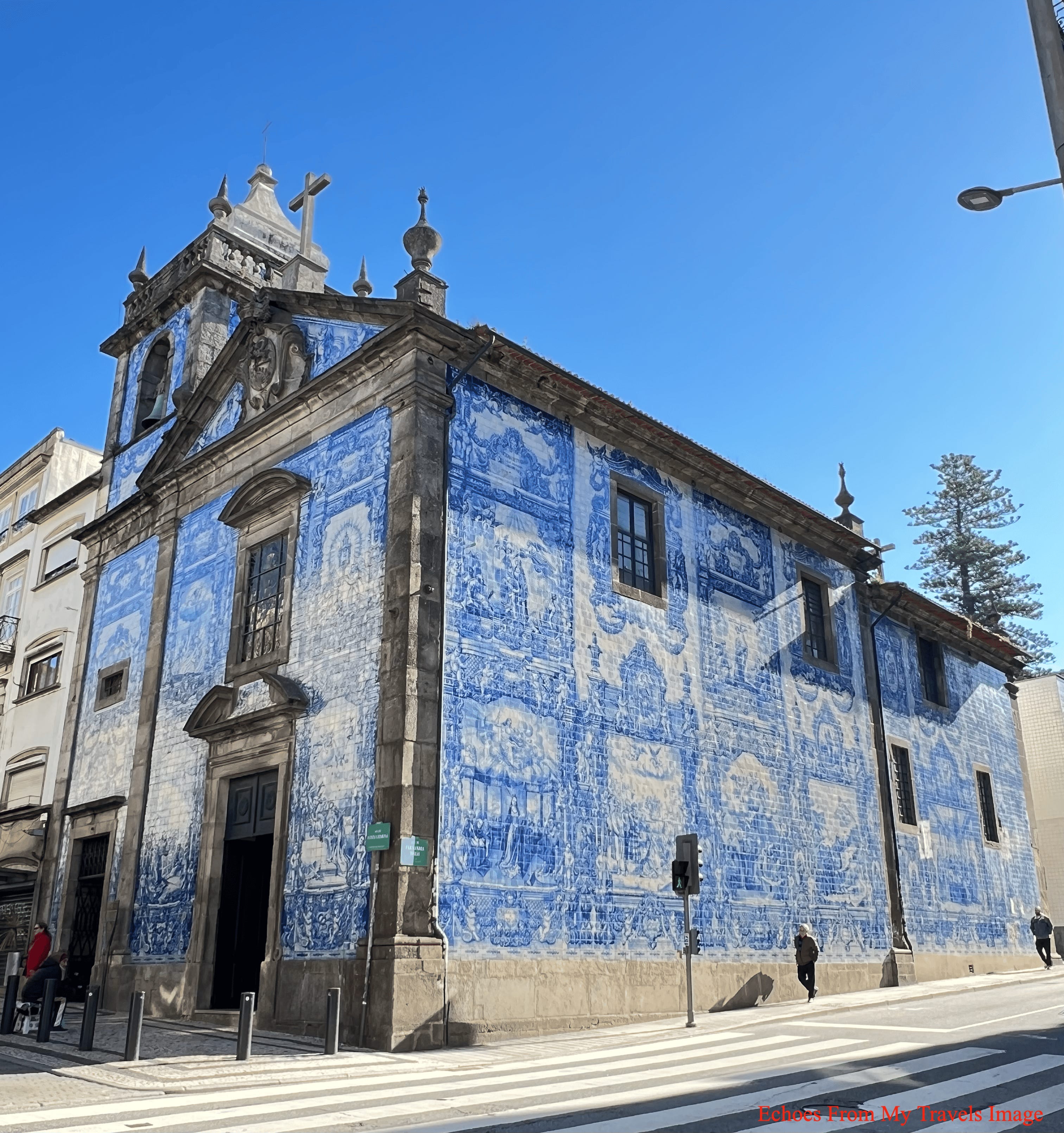 到了波爾圖市的靈魂禮拜堂 ( Chapel of Souls),這是最受網紅歡迎的打卡之處,教堂建於18世紀,但在20世紀初舖上15947片青瓷瓷磚,故事是,透過圖像讓不識字的人了解聖徒聖方濟各和聖凱瑟琳的生平故事故事。但那青花色調與構圖方式,讓人連想起景德鎮窯火中燒製的傳奇。
