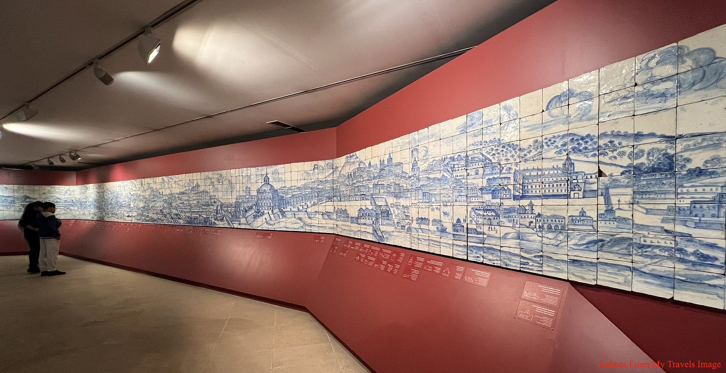 青瓷瓷磚在市井之間,也在國家瓷磚博物館裡,由聖母女修道院改建的博物館,收藏5百多年來各式圖案瓷磚,還有一長達23公尺長的藍白瓷磚的里斯本全景圖,圖中呈現18世紀城裏的教堂,碼頭,市集和街景。再細看這幅全景圖,有在晾衣服的老婦,卸貨的商船,甚至躲在樹叢偷情的男女。