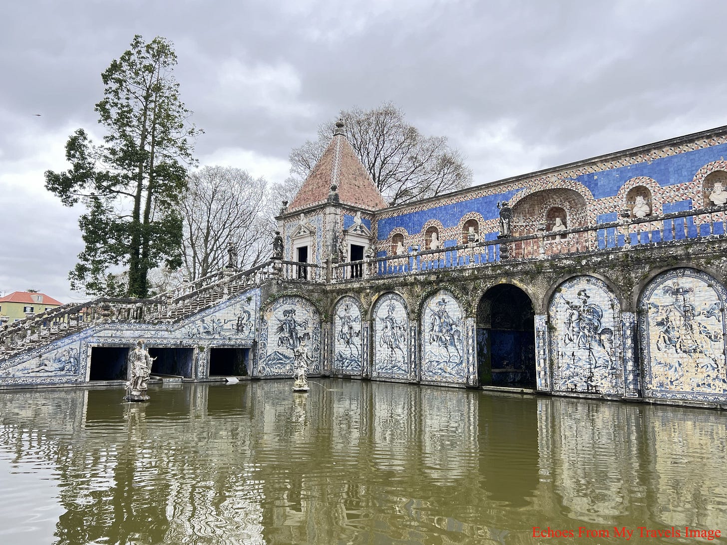 位於里斯本山腰的Fronteira Palace,是一座貴族府邸,也是葡萄牙瓷磚藝術珍貴寶藏,最動人是那一片片鑲嵌於花園涼亭與小教堂門廊牆面的碎瓷。傳說在一次為國王 Pedro II 舉辦的盛宴後,貴族們將使用過的中國瓷餐具故意摔碎,並將碎片鑲嵌入牆面的瓷磚,做為永恆紀念。
