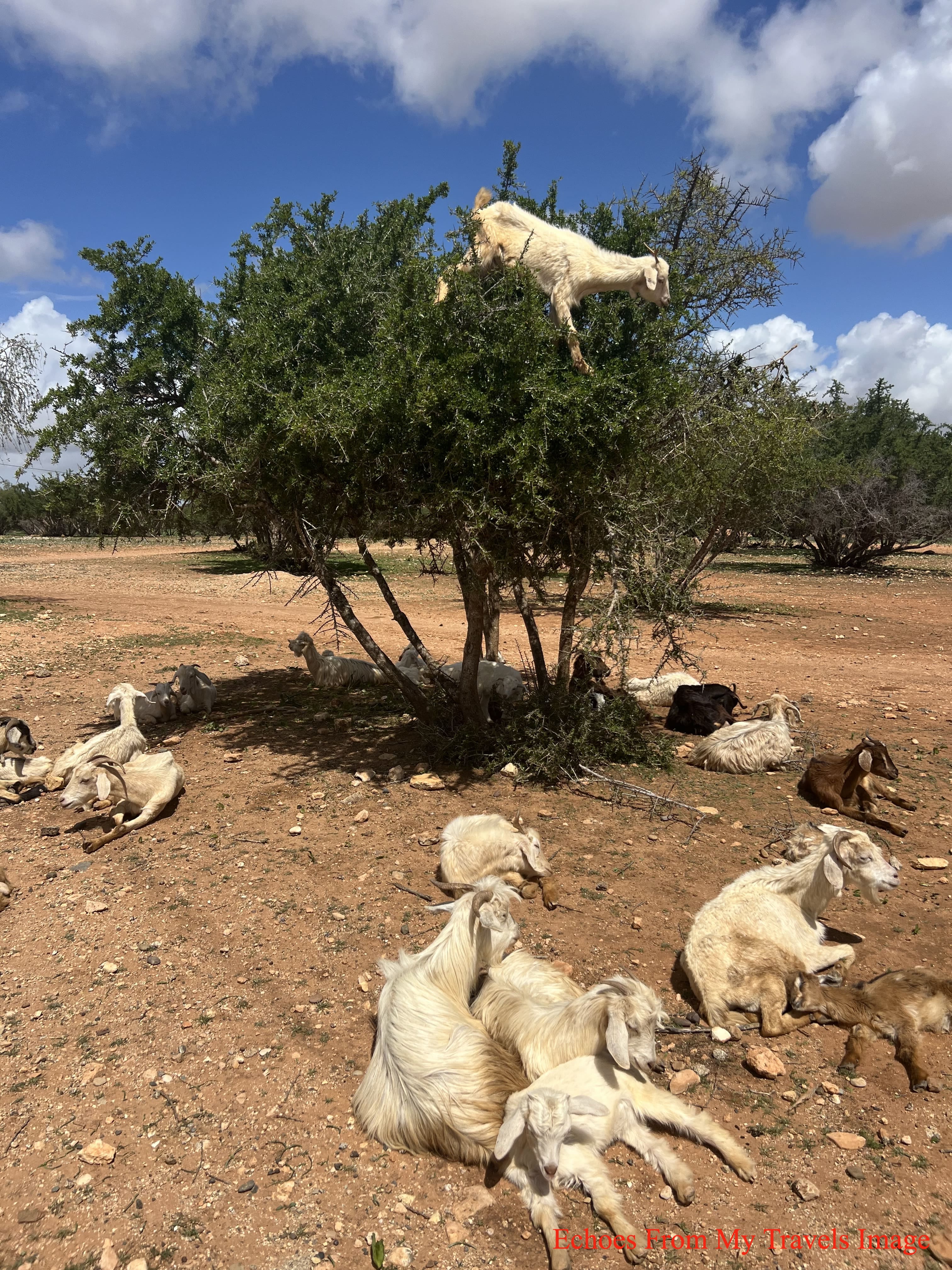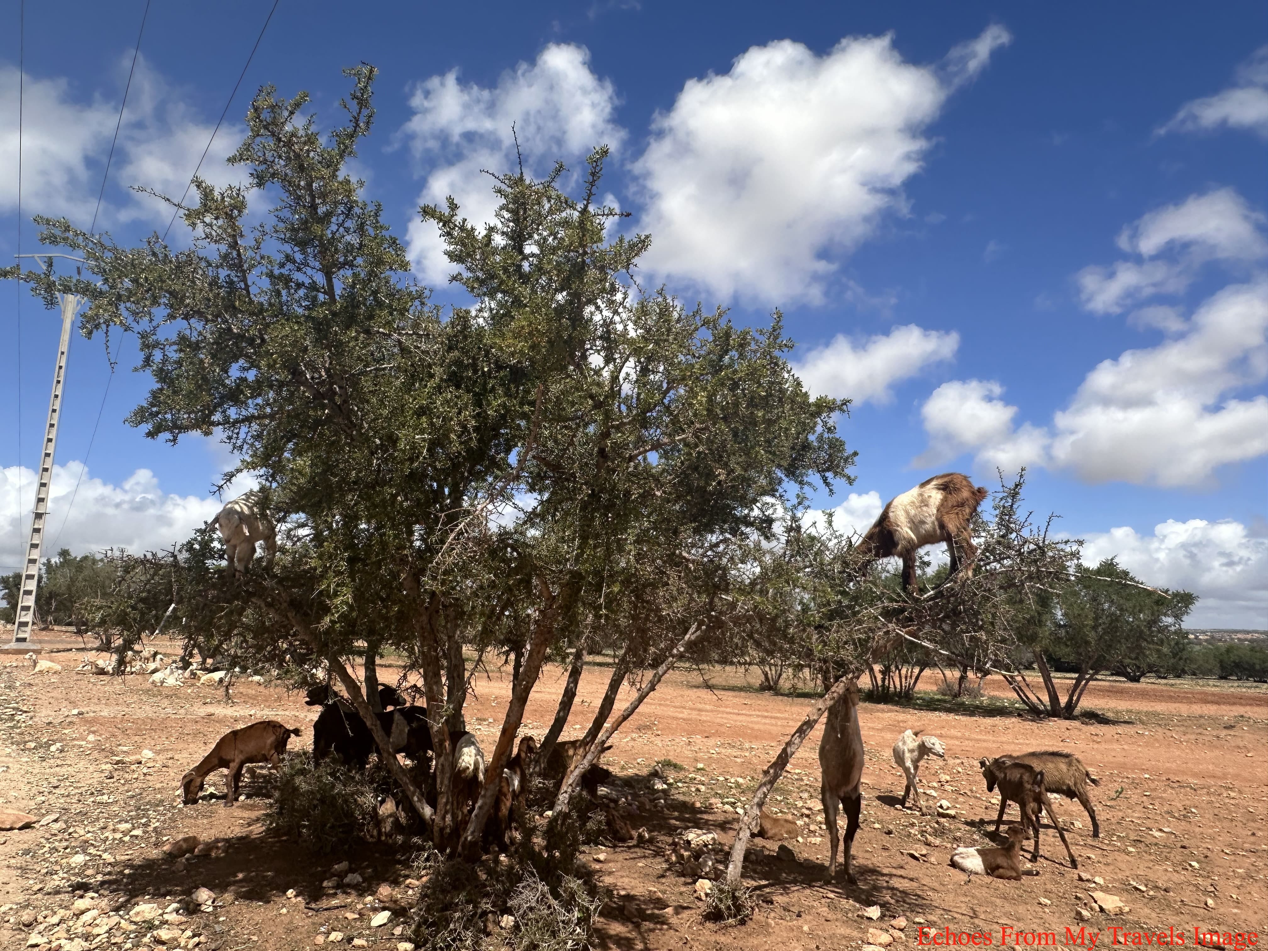 不過可確信的事,山羊上樹是摩洛哥的獨特的一景。山羊為吃堅果本能爬到樹上,確有其事。在氣候變遷,乾旱日益加劇,牧羊人將山羊栓在樹上,賺取外快,也是不爭事實。這是環宇奇聞,我是親眼看到,才知道背後這些故事。