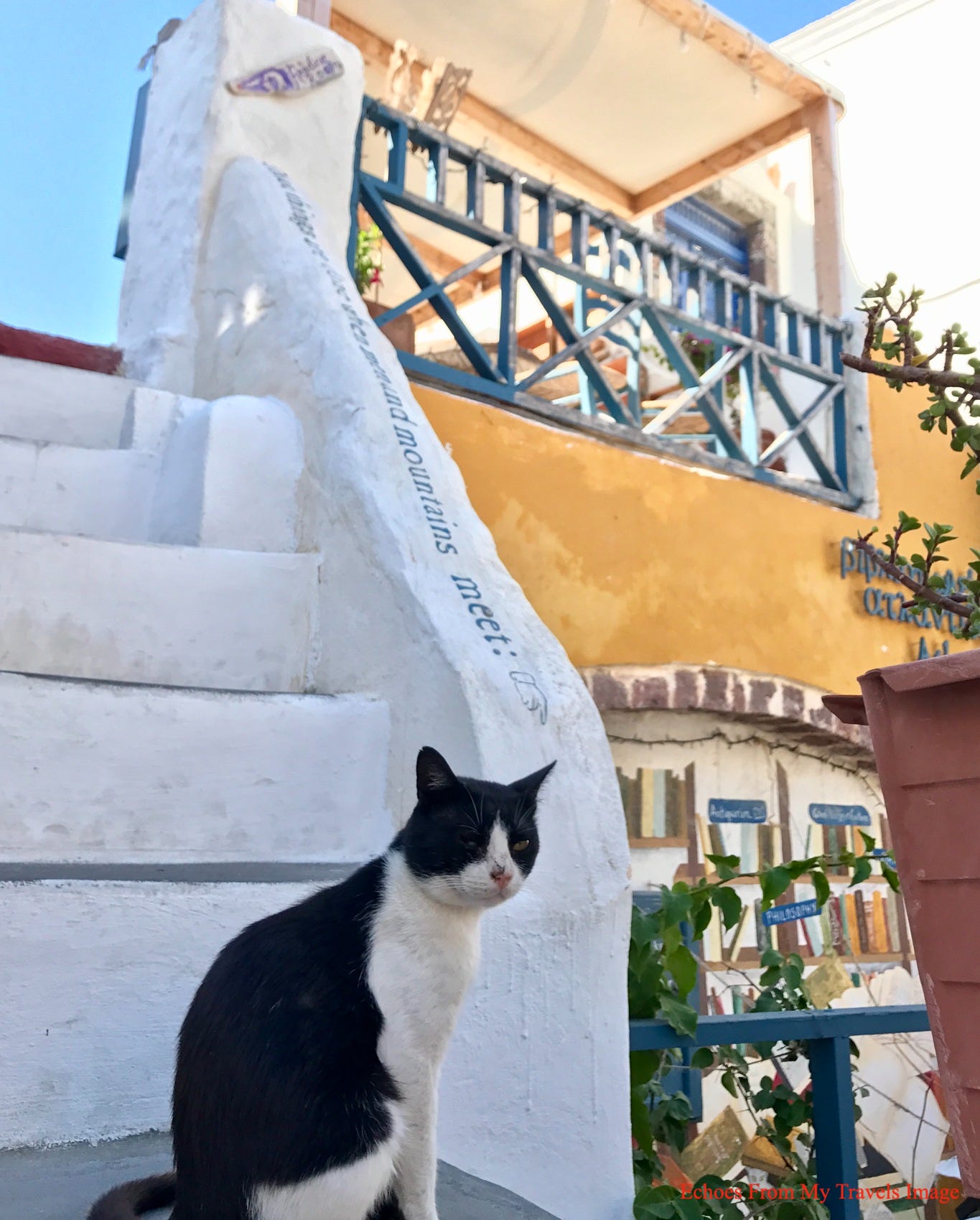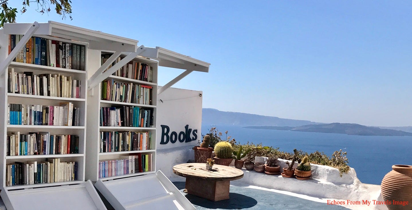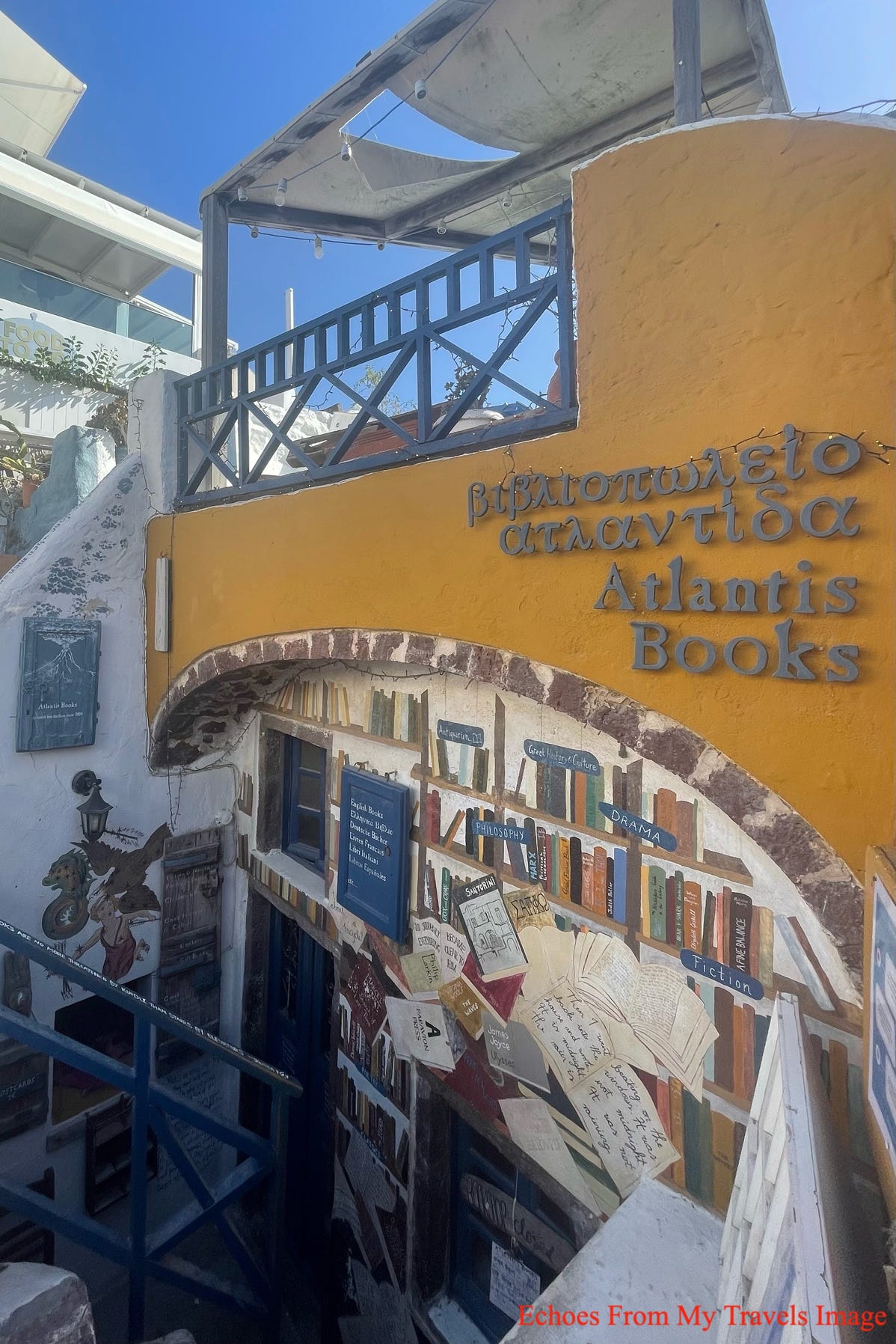 Atlantis 書店成立數年後,成為世界知名書店,疫情前,我前往Santorini旅遊,住在Oia,離書店步行約15分鐘處。書店的外觀擺設,令人流連不已,藍天大海,加上雪白的建築,讓人陶醉其中。