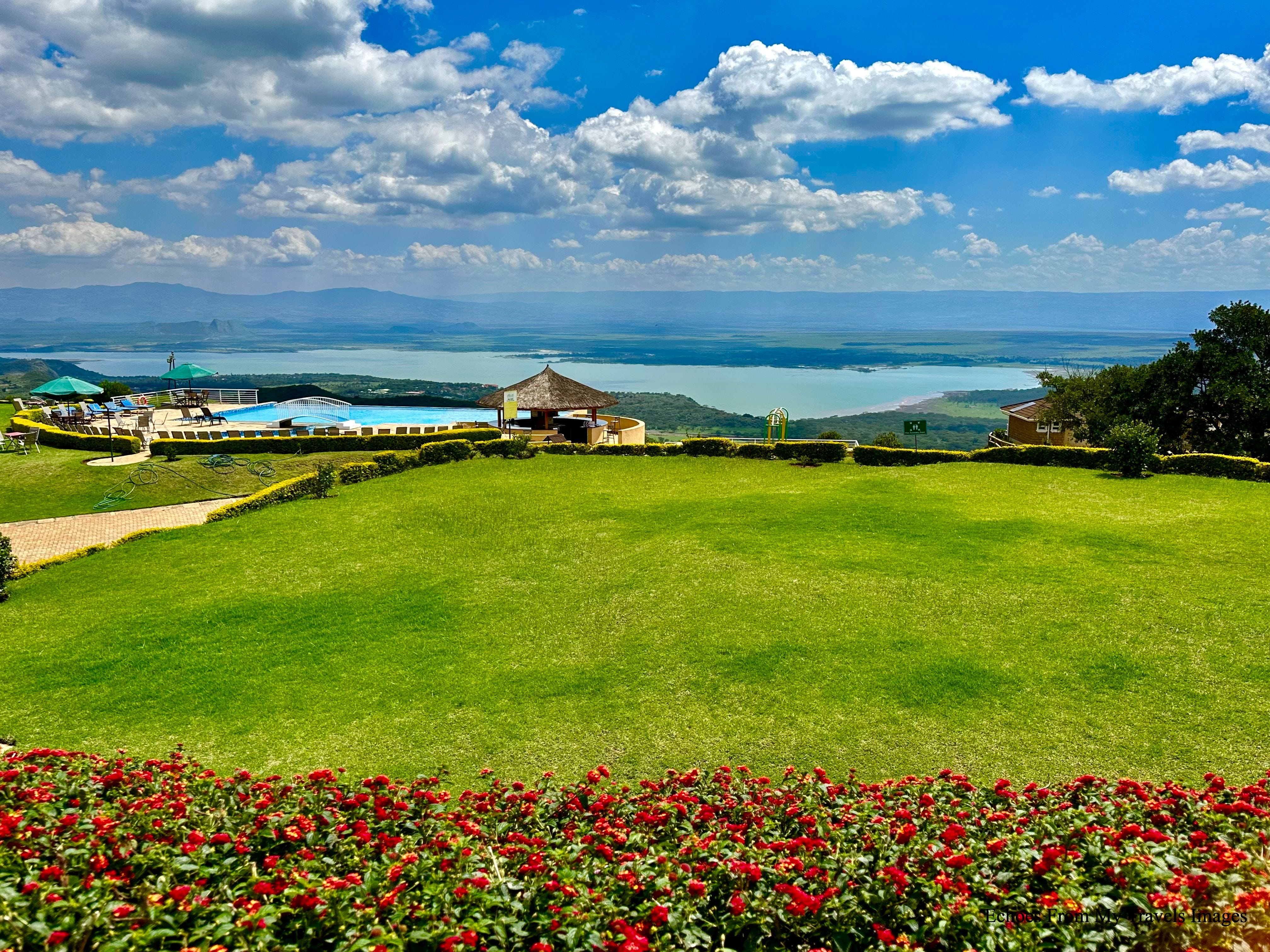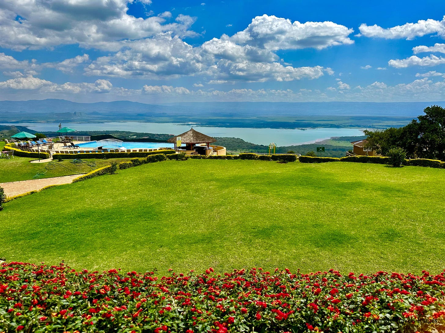 晚上住宿 Lake Elementaita Mountain Lodge。旅館位山腰,山下的湖景,翠綠的山巒,美不勝收。進出旅館的山路,顛簸崎嶇。