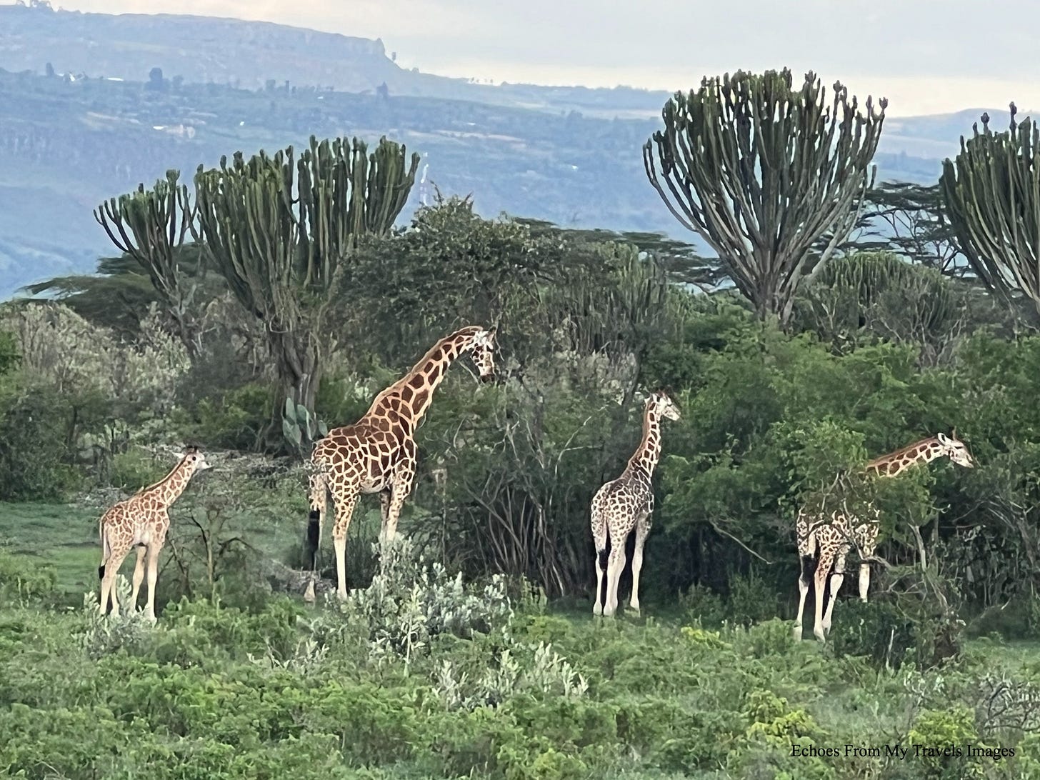 第二天 :早上8:30,當地導遊到旅館解說行程。Bob是我在肯亞馬賽馬拉獵遊的導遊,經驗豐富,處事不急不徐,熟知動物的習性。全團6位游客。在他的照顧下,非常開心。下午在Lake Elementaita 湖邊保留地獵遊。
